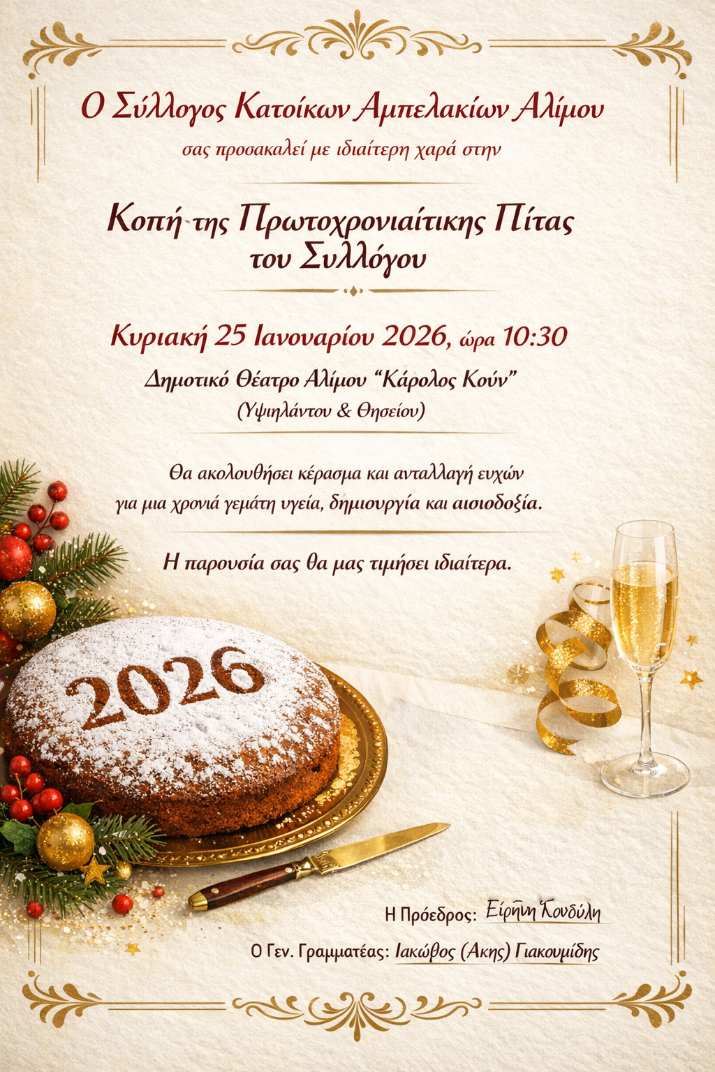Πρόσκληση στην Κοπή της Πρωτοχρονιάτικης Πίτας 2026